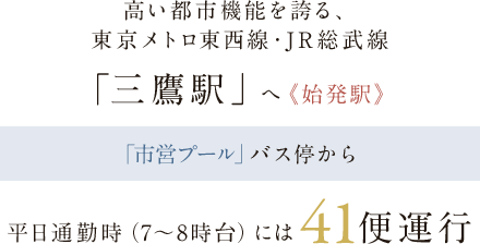 行き先や目的に合わせて、JR中央線&総武線、東京メトロ東西線、京王井の頭線、西武新宿線の5路線から選べる贅。しかも、そのうち3路線は始発駅であるため座って通勤も可能にする快適。自転車、バス、徒歩など駅までのアプローチも、天気に合わせて選ぶなど選択肢が豊富です。